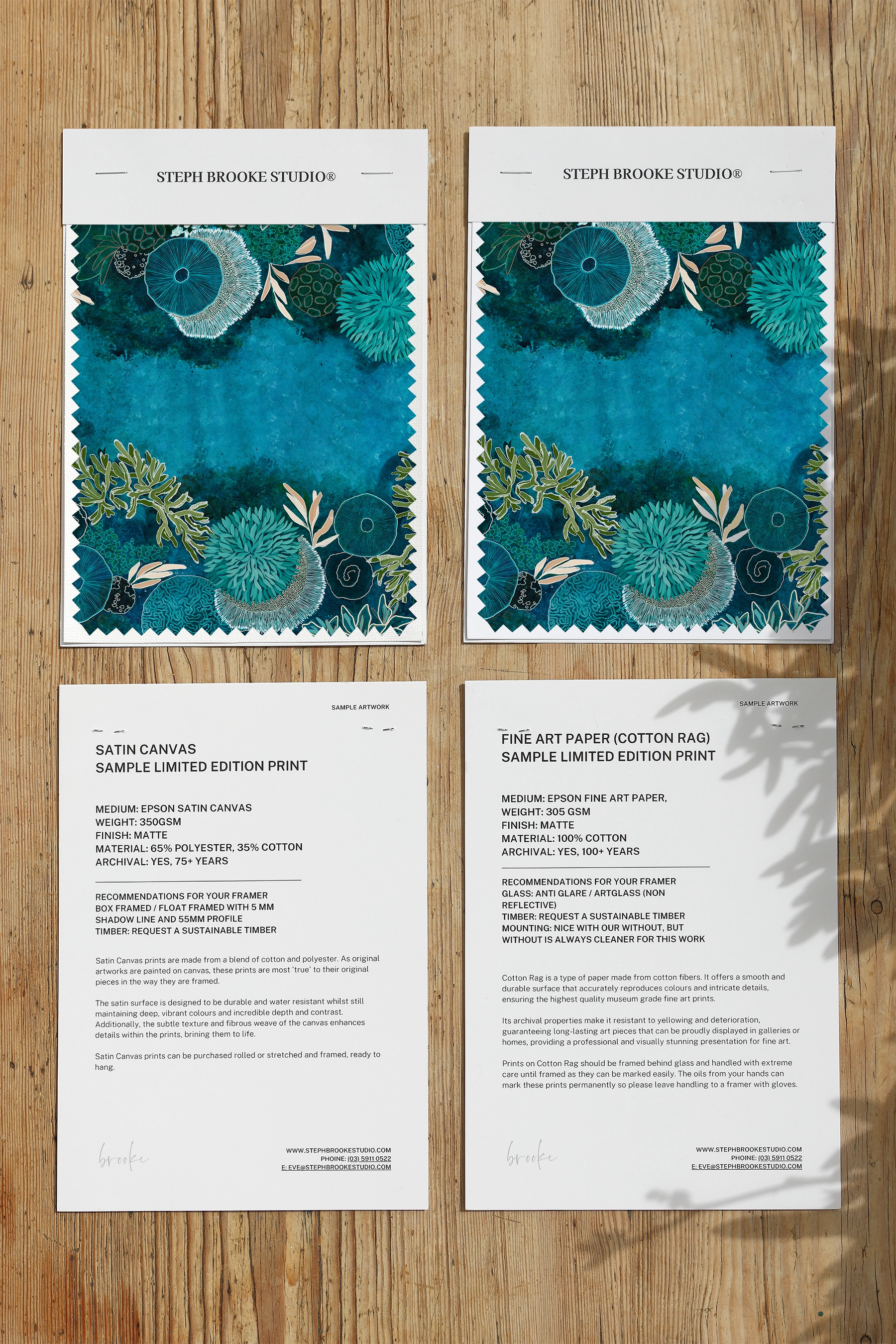Satin Canvas prints are made from a blend of cotton and polyester. As Steph's original artworks are painted on canvas, these prints are most 'true' to their original pieces.